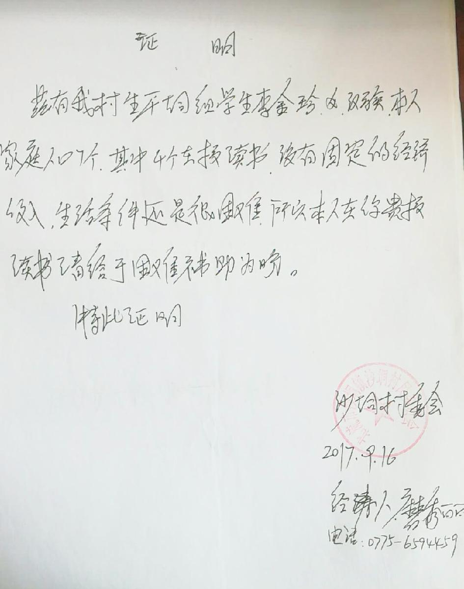 村委会开的贫困生证明(3)