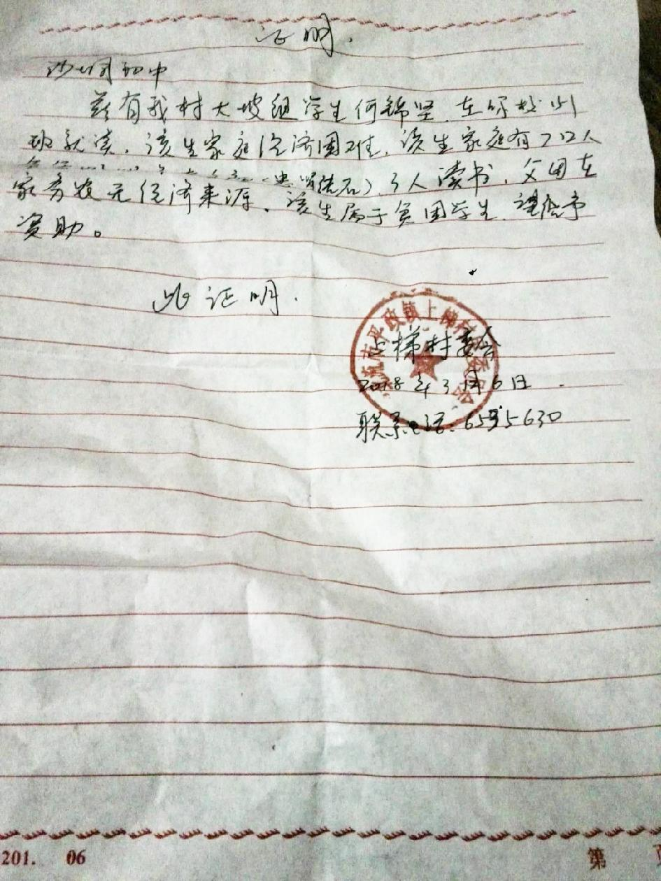 村委会开的贫困生证明(5)