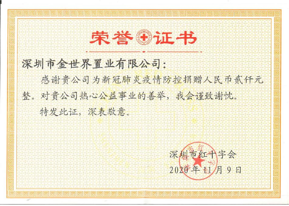 深圳市红十字会-新冠疫情捐款证明
